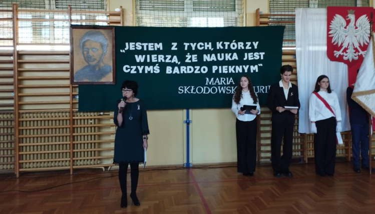 Cała uroczystość zakończyła się quizem o wiedzy i życiu Marii Skłodowskiej-Curie, naszej Szkole oraz