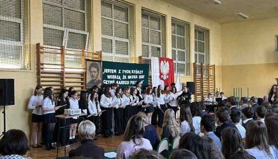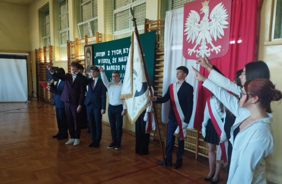 Cała uroczystość została przygotowana przez klasy dyżurujące 2C oraz 3G pod kierunkiem Pani Profesor Aleksandry Sałakowskiej.