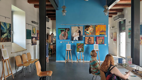 Przedstawiane obrazy oglądaliśmy na wystawie prac artystki w centrum sztuki w Brzeźnicy.