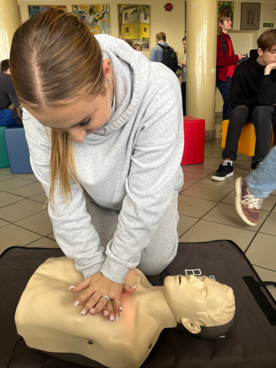 2B, 2C, 2D, 3C, 3D, 3E, 3H ćwiczyli resuscytację krążeniowo-oddechową (RKO) na szkolnym fantomie.