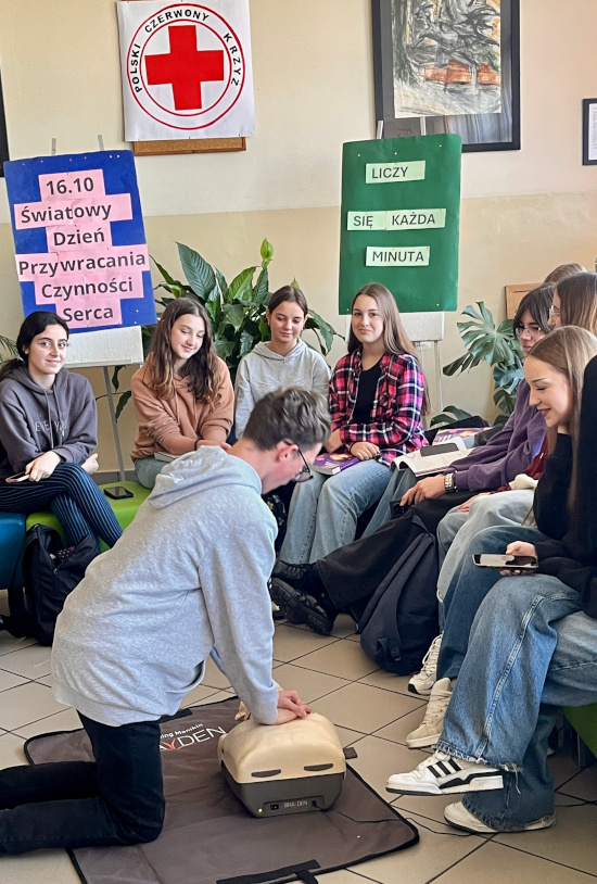 Europejskiego Dnia Przywracania Czynności Serca. Pod czujnym okiem nauczycieli uczniowie klas 1E, 1F,